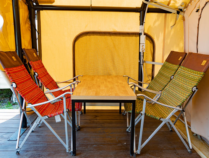 • 타프구성: 개별싱크대, 일체형테이블, 캠핑체어, 냉장고,선풍기, 전자레인지, 전기밥솥,  전기포트, 냄비, 프라이팬, 가스버너,집게, 가위, 칼, 국자, 뒤집개,수저, 소주잔, 컵, 접시, 바베큐그릴 등